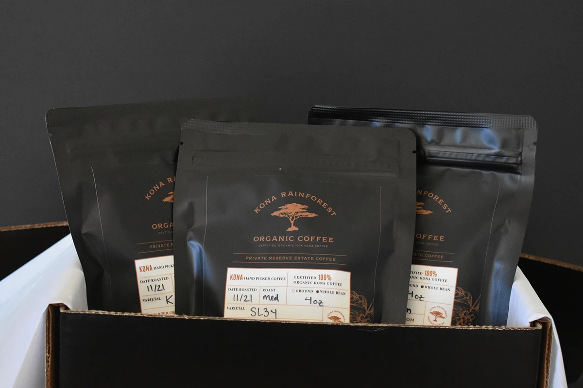 This unique set includes three, 4 oz medium roast bags of each varietal, perfect for those who love exploring new specialty coffees or enjoy cupping at home for a curated tasting journey. Experience the smooth richness of Red Bourbon with notes of dark honey, orange, and almond. Savor the bright profile of SL34, offering blackberry, currant, and dark chocolate tones. And discover the delicate sweetness of K7, with caramel, cocoa, and whispers of jasmine. Beautifully packaged and ready to gift, this box is an invitation to explore the art and depth of 100% Kona coffee in every cup.
