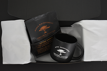 Everything you need for a perfect morning with Kona Rainforest Organic Coffee, beautifully presented. This elegant gift set includes 8 ounces of our Extra Fancy; rich and beautifully smooth with notes of deep cocoa, brown sugar, and a hint of citrus. Paired with our signature 14 oz ceramic mug, matte black on the outside and glossy within, it turns every cup into a quiet moment of luxury. Thoughtfully packaged and ready to gift with a holiday postcard, it’s a warm taste of Kona meant to be savored.